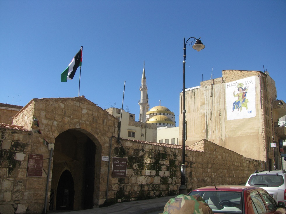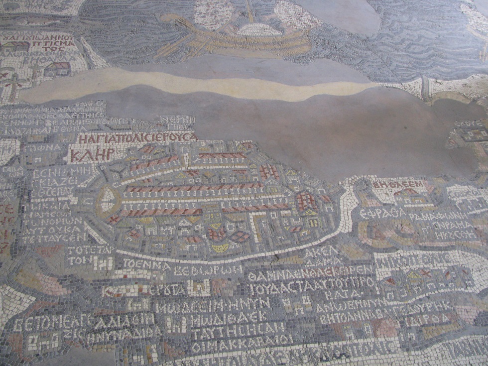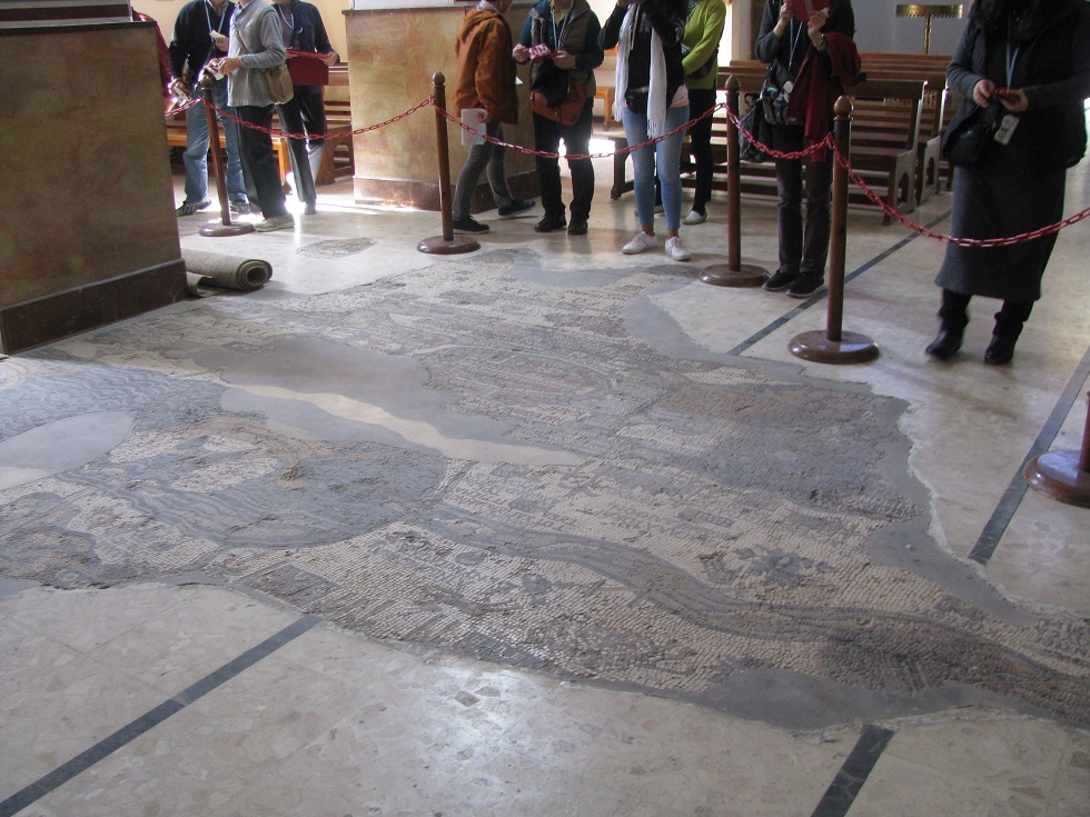 聖ジョージ教会はギリシア正教の教会で、ローマ帝国が東西に分裂した後に建てられている。床に6世紀に作られたモザイクが残っている。古代の巡礼地図、観光案内である。当時のパレスチナの地図がモザイクで描かれ、死海やエルサレムの市街地が判別できる。とりわけ、聖墳墓教会が大きく描かれ、4世紀にローマ帝国がキリスト教を国家宗教として間もない時期の、宗教的熱狂ぶりを彷彿させる。