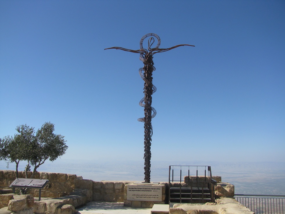 ネボ山はモーセ終焉の地とされている。旧約聖書によると、モーセはユダヤの民を率いてエジプトを出たが、乳と蜜の流れる地カナンへはなかなか到達できなかった。総勢60万人(「出エジプト記」12:37)のユダヤの民が、40年間シナイ半島をさまよったと、聖書には記述されているが、実態の数字はいずれも十分の一ぐらいか、もっと少なかったのではないだろうか。それにしても大人数であり、長い年月である。