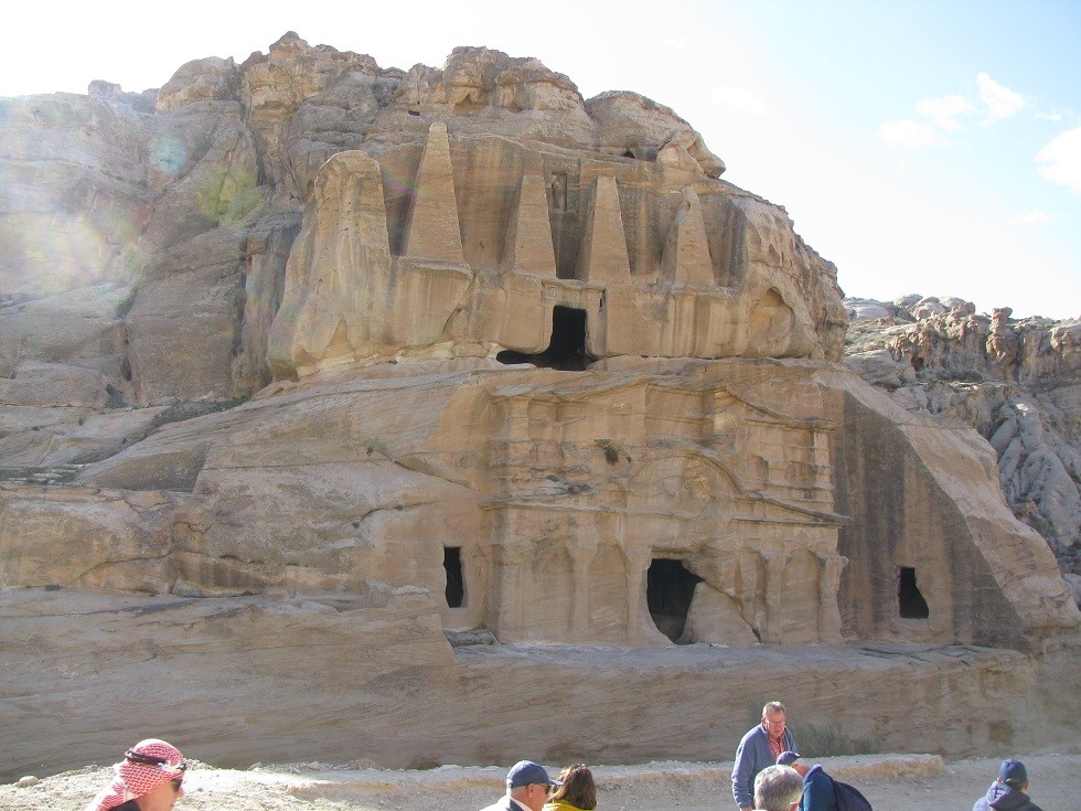 ほとんどの古代部族がそうであったように、彼らの宗教はアニミズムから発展した多神教だった。とくに祖先崇拝の念が強く、エル・ハズネも霊廟だった。エル・ハズネとは宝物殿を意味する。ファサード上部の壺に宝物が隠されているのでは、と発見者が思ったのである。もちろん宝物などなかった。建築様式はヘレニズム文化の影響を色濃く残している。紀元前1世紀から後2世紀に削りだされた。内部は入場禁止。映画「インディ・ジョーンズ最後の聖戦」に出てくるような奥行きはないらしい。地下室があり、まだ調査は終わっていない。