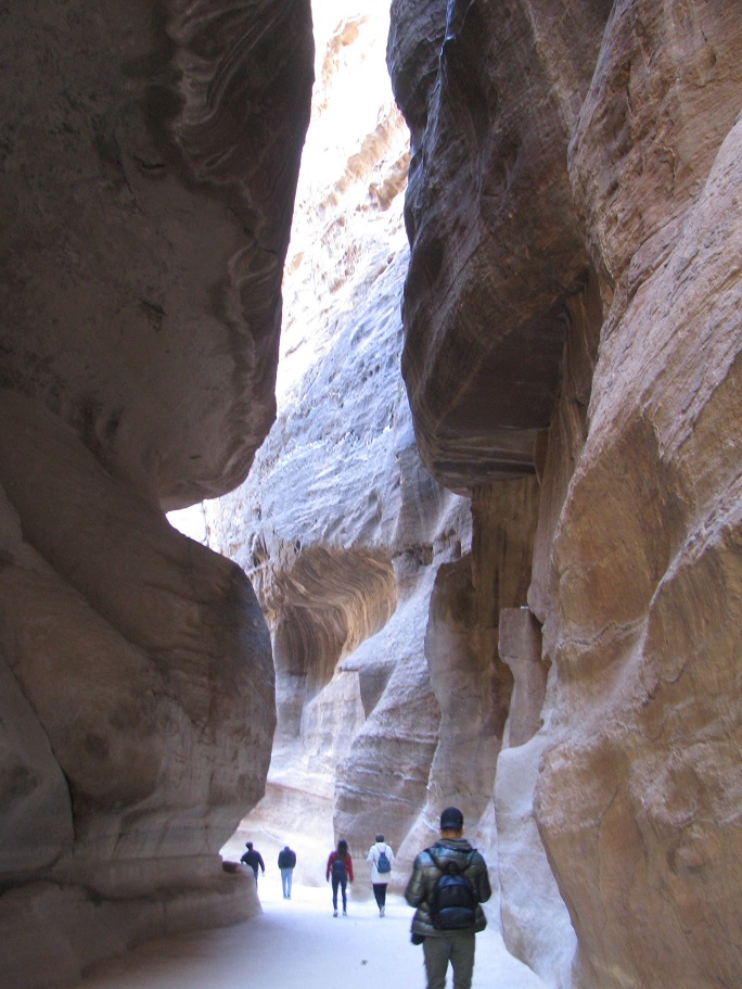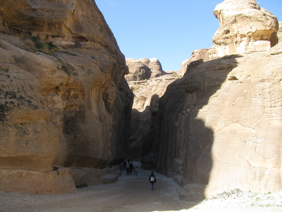 シークと呼ばれる岩山の裂け目は1.2キロメートルほどの回廊を形成する。岩壁は、最も高いところで100メートルにも及び、幅は狭いところで3メートルほどしかない。自然が生み出した奇跡の回廊である。切り立った崖の両脇には、胸の高さくらいの位置に水路が刻まれている。砂漠地帯に時折り降る雨は鉄砲水となる。この回廊も、その鉄砲水が作り出したものである。2018年11月、観光客が水路の上に退避した映像に驚いた記憶がある。古代人は、貯水池(ダム)を作って、貴重な雨を利用した。岩壁には神殿のファサードのような彫りこみが数多くある。