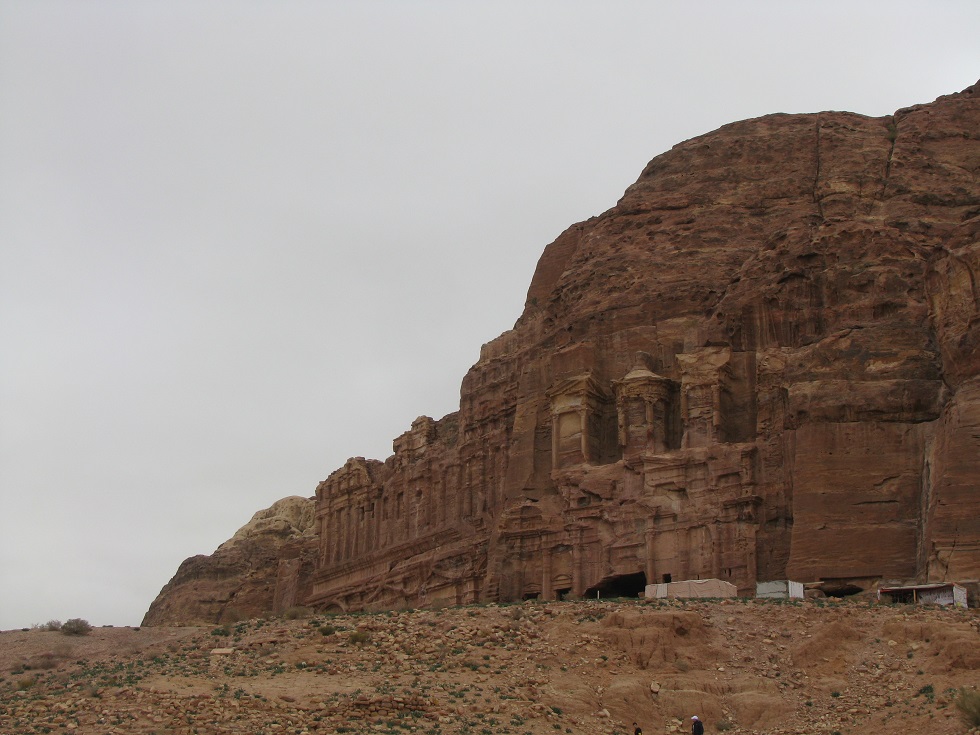ペトラでは回廊(シーク)とエル・ハズネがあまりにも有名だが、これは遺跡のごく一部に過ぎない。エル・ハズネ横の岩山の隙間を抜けると盆地状の台地が広がる。中央には水の枯れた川がある。両側の崖には霊廟が数多く彫り込まれている。建物正面はローマ帝国の宮殿様式に酷似している。半円形劇場や列柱通りが残っている。資料によると発掘された建物の数はおよそ800、うち500以上が墳墓とされる。祖先崇拝の宗教だったことを遺跡は物語る。