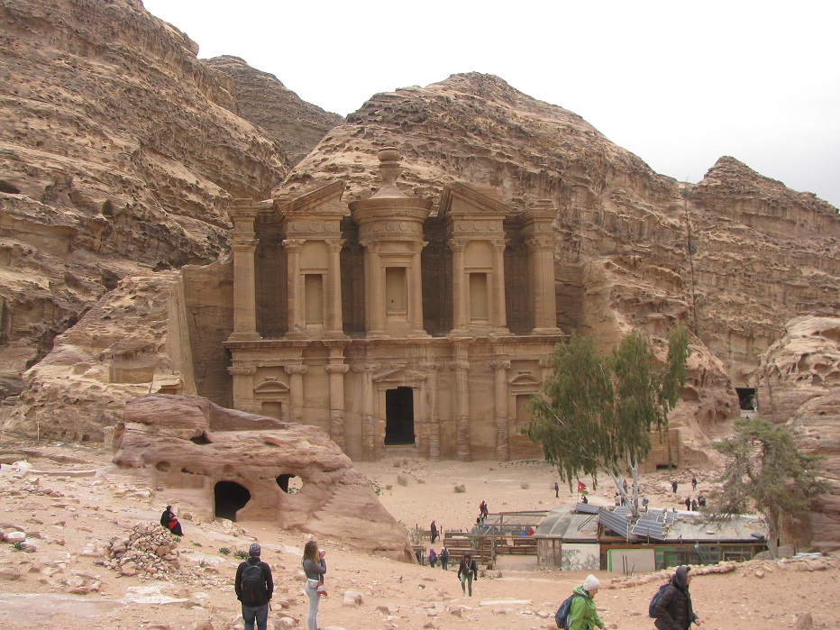 盆地状の大地を過ぎると山道に入る。1時間ほど登ったところに、修道院と呼ばれるエド・ディル遺跡がある。エル・ハズネより少し後、1〜2世紀に作られた霊廟である。エル・ハズネのような柱廊玄関はないが、建築様式は酷似している。十字軍時代、一時期修道僧が住んでいた。名称の由来はそのあたりにある。