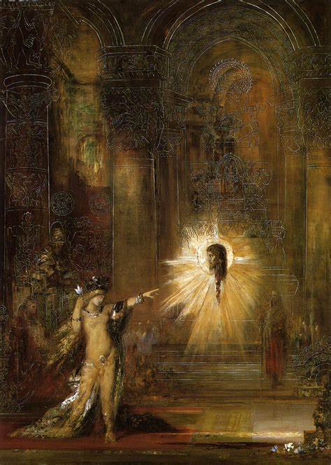 聖書を読む限り、サロメは、母にそそのかされて、洗礼者ヨハネの首を求めただけの少女にすぎない。後年、サロメがファム・ファタル(運命の女)的なイメージに変わったのは、なんといってもオスカー・ワイルドの「サロメ」(西村孝次訳、新潮文庫)が影響していよう。絵画では、ワイルドの「サロメ」に挿絵を描いたオーブリー・ビアズリーが、鮮烈な印象を残す。ギュスターヴ・モローに至ると、神の権威への挑戦者に昇華する。音楽では、リヒャルト・シュトラウスが、ワイルドの「サロメ」を原作とするオペラを残した。