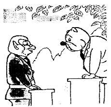 まり子が証言席にすわると、ブルドッグ検事がむずかしい顔をしてたずねました。