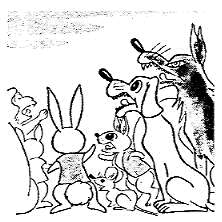 りべる弁護士がすわると、森の動物たちが、がやがやと、いっせいにさわぎはじめました。