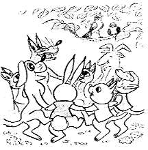 おや、きつねのこん太だけ、そのおどりのわにはいっていない。
