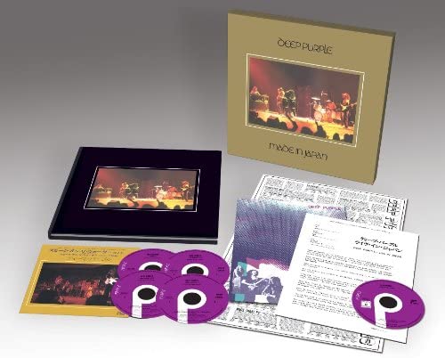 Original Album (2025 Steven Wilson Remix) 1. Highway Star 2. Child in Time 3. Smoke on the Water 4. The Mule 5. Strange Kind of Woman 6. Lazy 7. Space Truckin' Disc 2 Osaka 15/08/1972 1. Highway Star 2. Smoke On The Water 3. Child In Time 4. The Mule 5. Strange Kind Of Woman 6. Lazy 7. Space Truckin' Disc 3 Osaka 16/08/1972 1. Highway Star 2. Smoke On The Water 3. Child In Time 4. The Mule 5. Strange Kind Of Woman 6. Lazy 7. Space Truckin' Disc 4 Tokyo 17/08/1972 1. Highway Star 2. Smoke On The Water 3. Child In Time 4. The Mule 5. Strange Kind Of Woman 6. Lazy 7. Space Truckin' Disc 5 1. Black Night Osaka 15/08/1972 2. Speed King Osaka 15/08/1972 3. Black Night Osaka 16/08/1972 4. Lucille Osaka 16/08/1972 5. Black Night Tokyo 17/08/1972 6. Speed King Tokyo 17/08/1972 7. Black Night (German Single Edit) 8. Space Truckin' (Mexican Single Edit) 9. Smoke on the Water (U.S. Single Edit) Disc 6 1. Blu-ray Made in Japan - Steven Wilson Atmos Mix |