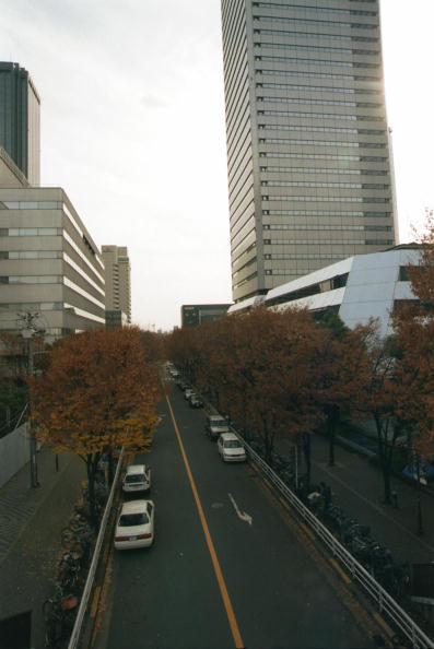 この陸橋のドン突きは,大阪ビジネスパーク。右に見えるのはツインタワー。