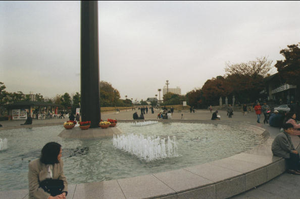 振り向けば,噴水。そのずーっと向こうがJR大阪城公園駅です。