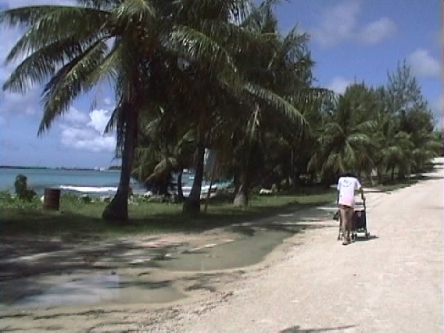 暑いよなあと思いつつ、2時すぎにビーチへ。私とパパは交代で海へ。途中で2人はサイドバイサイドに乗せたまま昼寝。起きてからは、スタッフの人がずっと遊んでくれてた。おやつまでもらって。特に人見知り全然しないたーくんはいろんな人に抱っこされまくり。スタッフは、日本人、チャモロ人、フィリピン人など。片言日本語と片言英語で妖しげな会話。そこのボスのおじさまは日本語ぺらぺらだったけど。双子を見ててもらえるので、パパと一緒に海へ。綺麗だ〜。意外に魚がたくさんいる。珊瑚はあまり見当たらないので珊瑚に群がる小さな魚というのはあまりいないけど、人懐っこいチョウチョウウオがついてくる。餌をあげるとクギベラがすごい勢いで食べに来る。ベラ系、ブダイ系、カワハギ系、水面直下にはサヨリがたくさん。