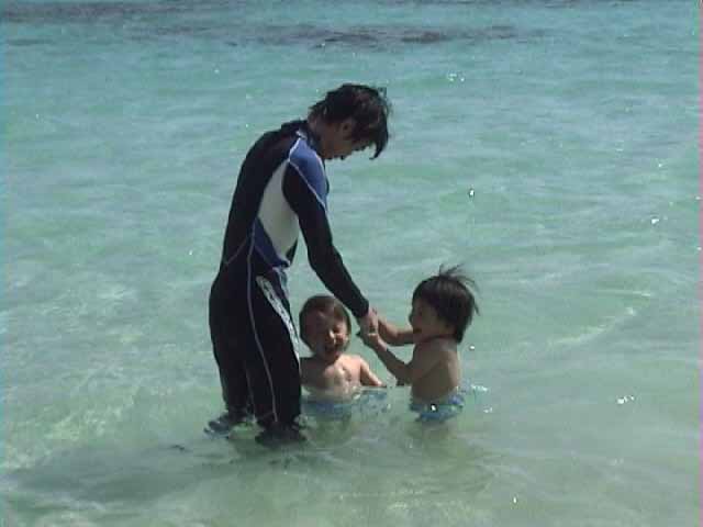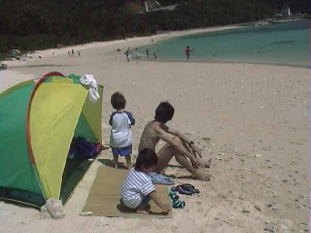 なつかしい、阿波連ビーチ。また来れたね。綺麗な海と砂浜が迎えてくれた。けっこう風が強い。持参したテントを張り、ござを敷き。水はやはり少し冷たい。ウエットを着てパパは海へ。子供たちと砂遊びしたり水際で遊んだり。交代して次は私が海へ。確かに水は冷たいがウエットのおかげで問題なし。魚は心なしか小さいような気がする。パパも同じことを言っていた。前回が真夏だから3ヶ月の間に大きくなるのか?大好きなクマノミが沢山いる。それも大分近くまで寄ってくる。というか、警戒しているかのよう。卵があるようだ。気持ちいいなあ。子供たちはパパと海に入っている。ばちゃばちゃと楽しそう。