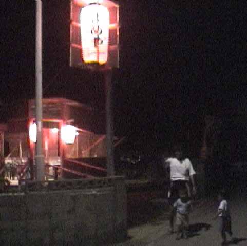 夕食後はまた「まめや」へ。子供たちはお茶、パパは泡盛「久米仙」をロックで。きっつーい。メニューにゴーヤサラダがあるが、ゴーヤだけのスライスをリクエスト。そのままばりばり食べるパパ。苦いよ〜。でもフレッシュで歯触りはいい。おまけにたーくんまでバリバリ食べてる。苦くないの?パパが食べてるものは欲しがるからなあ。でも中皿山盛りにでてきたぞ(^^;)