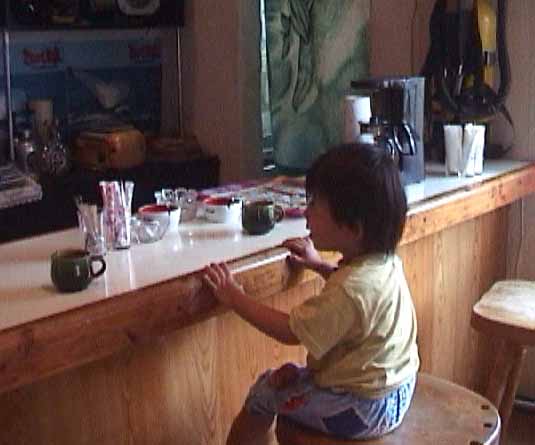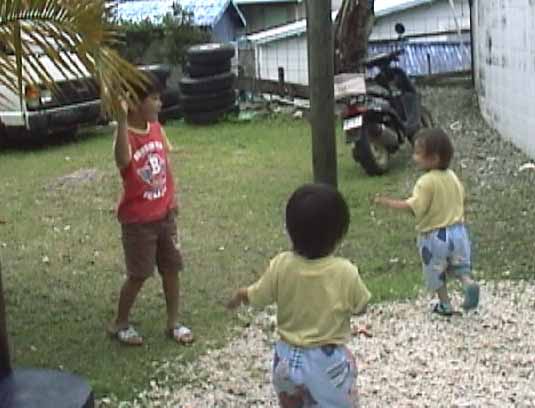 Come」のティールームへ。コーヒーを飲み、店内に飾ってある写真を見、ダイビングに行くのを待っている人達やスタッフと話しをし。子供たちは走りまわり、あちこちでかわいがられている。宿にも4歳6歳の男の子がいるので、一緒にきゃっきゃとはしゃいでいる。お兄ちゃん、好きだもんなあ。