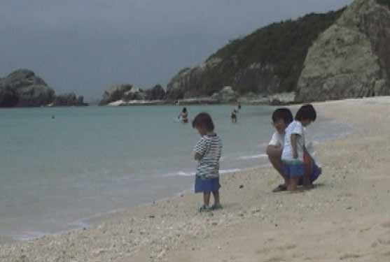 海中の透明度もよいが、日差しが薄いので明るさが足らなくて映像的にはいまいち。それでも写真やビデオに収める。子供たちはあまり海には入らずに砂遊びに興じる。