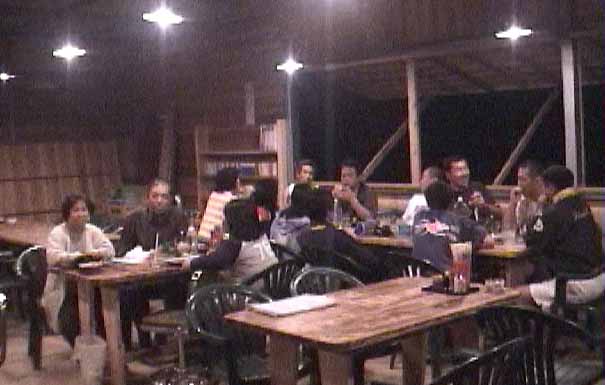 宿に戻ると、入り口でスタッフのお兄さんたちが話しをしていたので一緒におしゃべり。子供たちもかまってもらって、もうおおはしゃぎ。1人はなんとご近所出身だった。ここのスタッフ、いわゆる「居候」なのかな?見かけはいかにもダイバーって感じなんだけど、みんな礼儀正しく、はきはき明るくて気持ちのよい対応だった。子供たちにもやさしいし。そうこうしているうちに、就寝。が、また寝られなかったんだなあ。それも喉が痛くて。あれ、風邪引いたかも。ちょっと寒かったし。