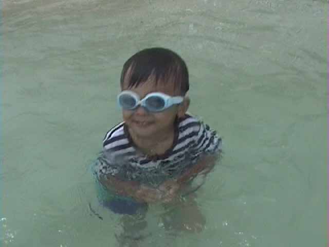 時々雨がぱらぱらくる中、それでも子供も親も海を楽しむ。すっかりもぐる(頭が海中にすっかり入るくらい)のが好きになったたーくん、何度も何度もやっていた。そして手足をばたばたさせる。はたからみると、溺れてるのかと間違うほど(^^;) あーくんは顔をつけるのがいやで浮き輪大好き。大きくなったら深いところに行くんだそう。今は小さいからいいのね。