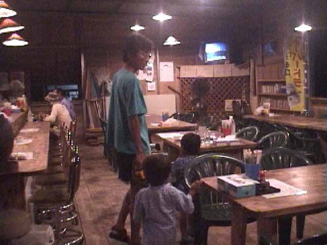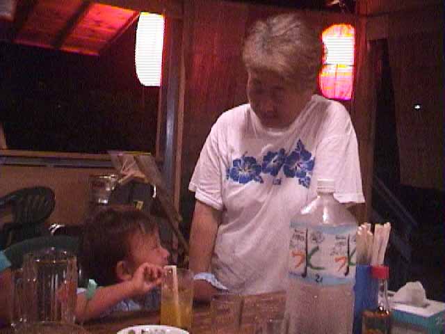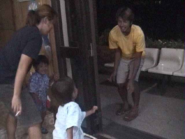 最後の夜、またまめやですごす。居合わせた現地の(?)男性、子供たちをかわいい、かわいいと言ってくれて、ジュースをおごってくれて。その人の言葉、NHKのドラマの「ちゅらさん」で出てくる言葉そのもの。語尾に「さ〜」が付く。生「さ〜」だ!!