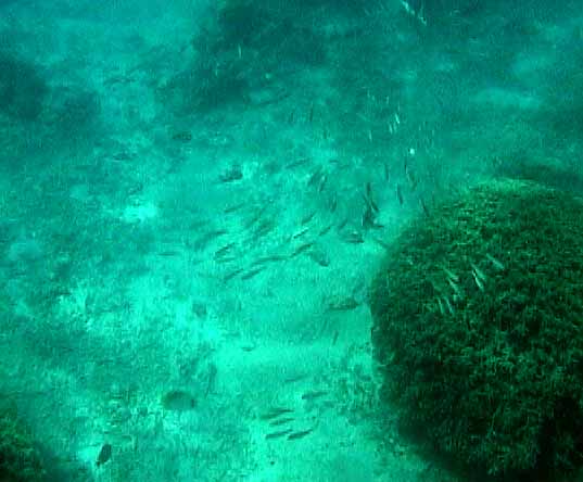 | フエフキダイ。 かなり大きいのがどんどん寄ってきまて、 数匹に囲まれるとこっちがちょっとびびります(^^;) |