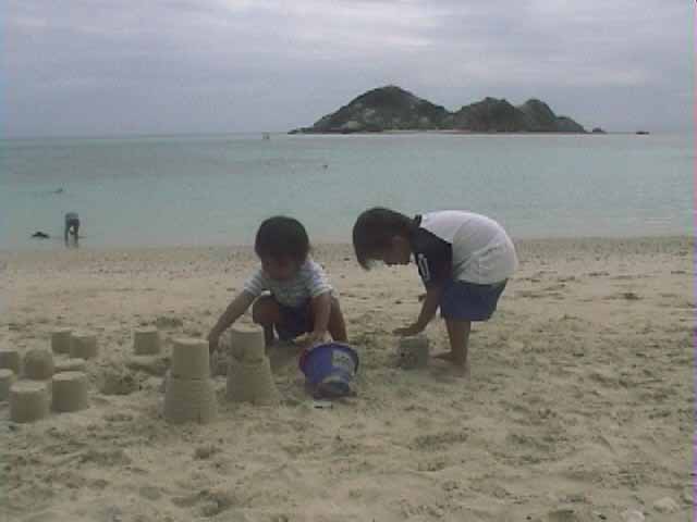 昼は元気になったよ〜と報告しにまめやへ。といってもまだ食欲がないらしく、ほとんど食べなかったあーくんを心配して、まめやのおばちゃんが小さなおにぎりを作ってくれた。後でも食べられるように、と。ありがとう。実際、夕方になってビーチで食べた。ついでにたーくんも。