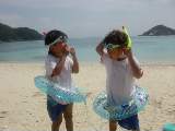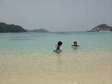 | ごく浅瀬で餌を投げるとコバンアジほか白系の魚がよってきて子供たち熱中 おやつのアイスに至福の時 | ![]() |