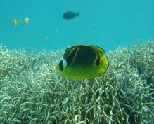 | 一本目 水がかなり冷たい ウェット着てても寒い〜魚はあまり多くない印象 エイと遭遇 天敵ゴマモンガラも二匹 泳げども泳げどもなにもないところが続き?と思ってたらどうも調子にのって沖まで泳ぎすぎたらしい(^^;帰りは珊瑚を堪能 上がったら気持ち悪い…なぜ?時間がながすぎた?今はうきわにロープつないでパパが沖へ連れていってる あーああんな沖まで行っちゃって… | |