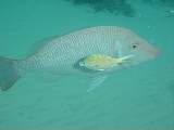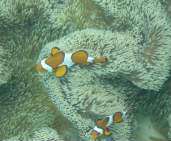| i-modeが混んでてつながらない 天気は晴れ時々雨 それでも海へ エントリーしてすぐにカメラのハウジングが曇ってるのを発見 しかたないのでそのまま そういう時に限って撮りたいものが 悔しい 15分ほどで寒くなってあがろうっとと思い岸に向かうと曇がとれてる!あわててUターン チョウチョウウオの集団やらノコギリダイの大群やらをもう一度見る 去年も見たクマノミ城も発見 ワクワクしながら見てると近くで餌やりする人が 寄ってくる大量の魚その中に大きなフエフキダイ 極近くで撮影 うれしー | ![]() |