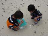 | かなり部屋でうだうだした後釣竿借りて仕掛け買ってビーチで夫は釣り 釣果はオジサン一匹 子どもと私は貝拾いと砂遊び 白砂だんご作りその内すこーし暖かくなってきた | ![]() |