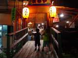 | 夕食後子供たちは常連さん達とアイスを食べに親は宿の外で夕涼み(寒いのでまた長袖) 静かだ | ![]() |