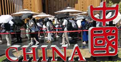 5)中国館『竹簡や古代中国文化を見たくて並んで入館』