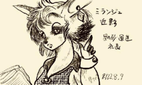 ミランジュは、もう一度だけ大きくためいきをついた。そして、思いなおしたように書類をフェアリィの前にさしだした。頭の両側から伸びた耳が力無く垂れ下がる。