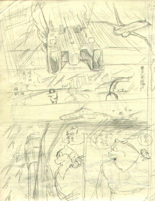 (20年前の絵コンテです。20ページ目で収拾がつかなくなりあえなく轟沈。)