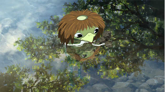 河童のくうは、一緒にいた父親が侍に殺されたとき偶然に起きた地震の地割れにすいこまれます。